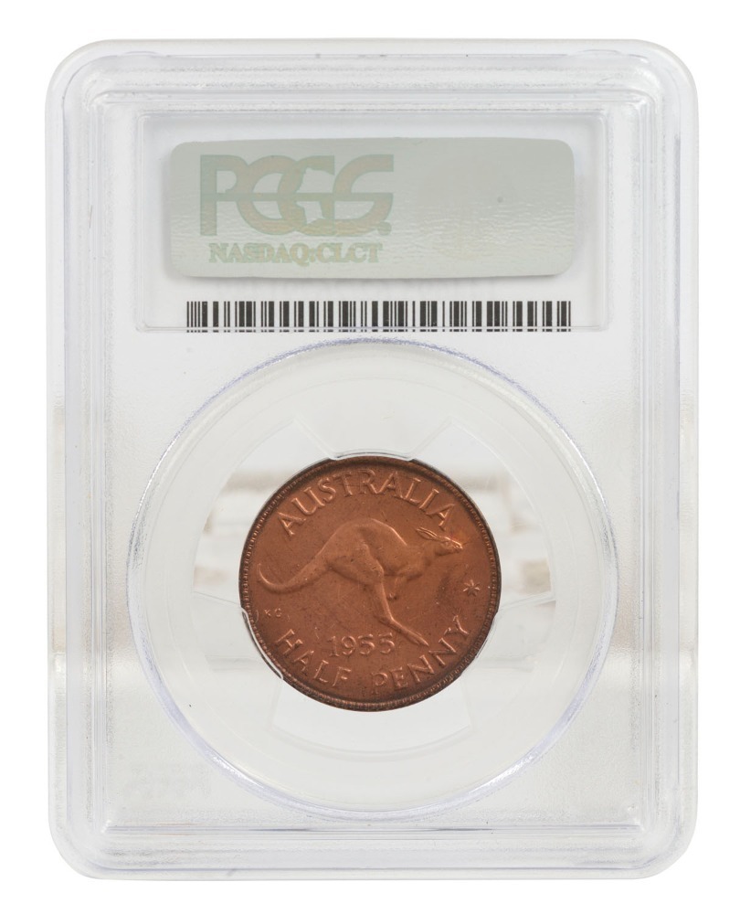 ELIZABETH II, PERTH MINT PROOF 1955 half penny; in PCGS case.