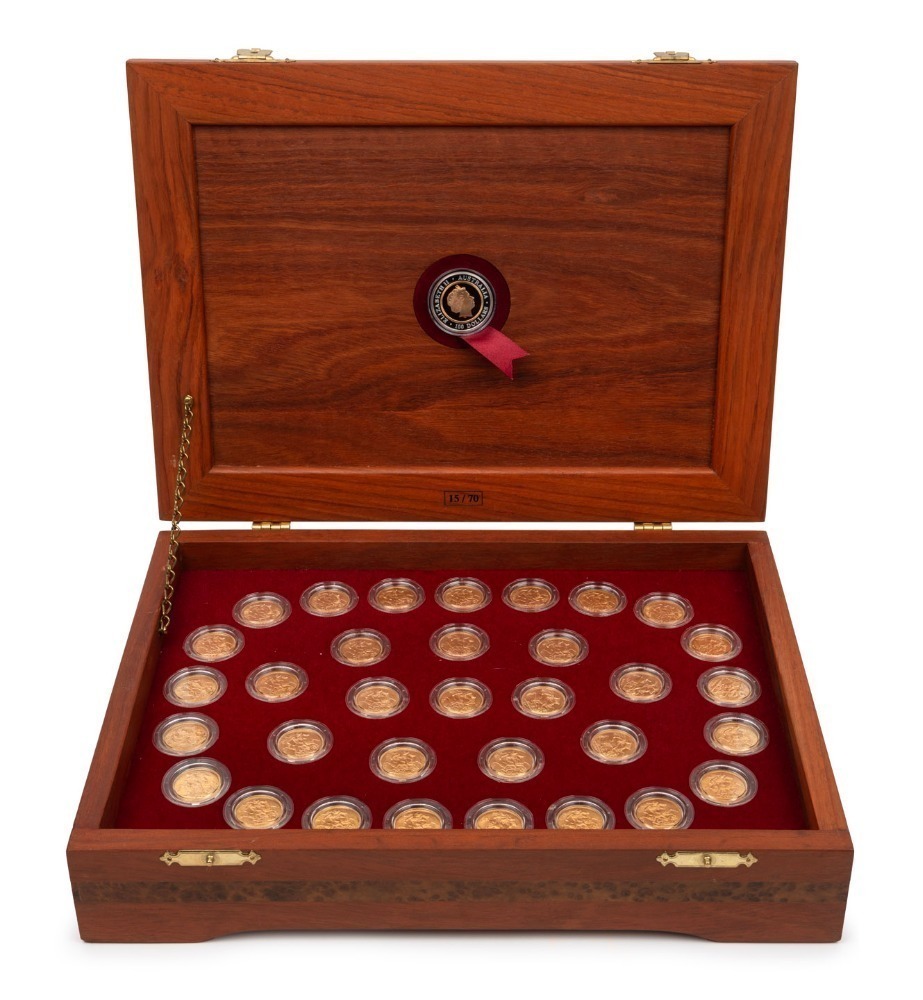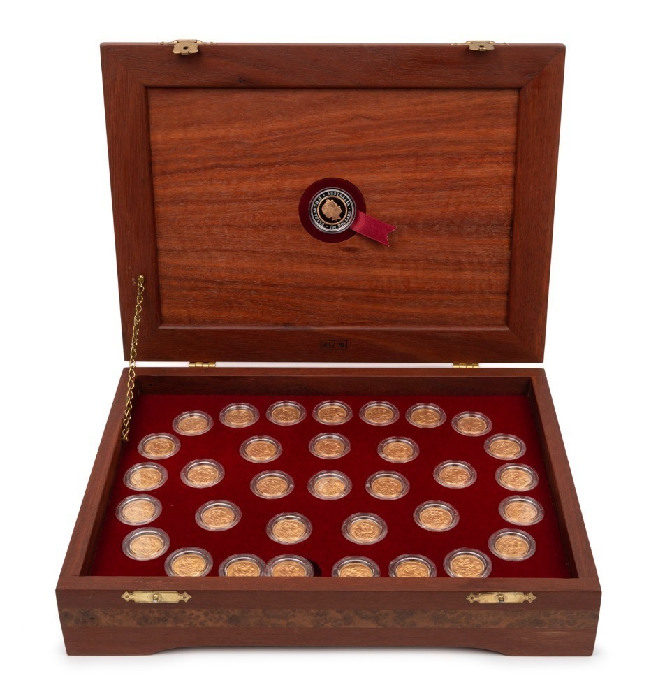 The coins are in uncirculated condition and housed in a custom made timber case; this set being No.15 of only 70 produced. (34 coins, timber case and descriptive booklet).