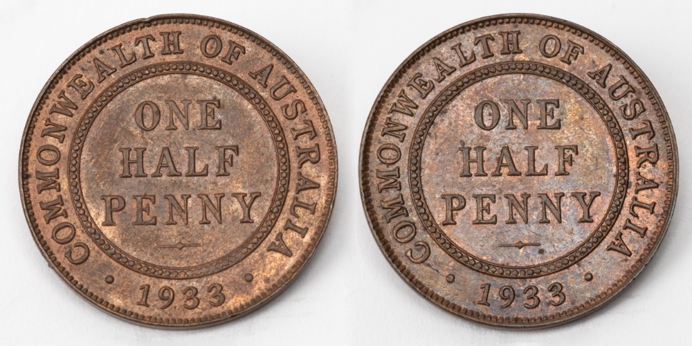 HALF PENNY: GEORGE V, 1933, Unc. (2).