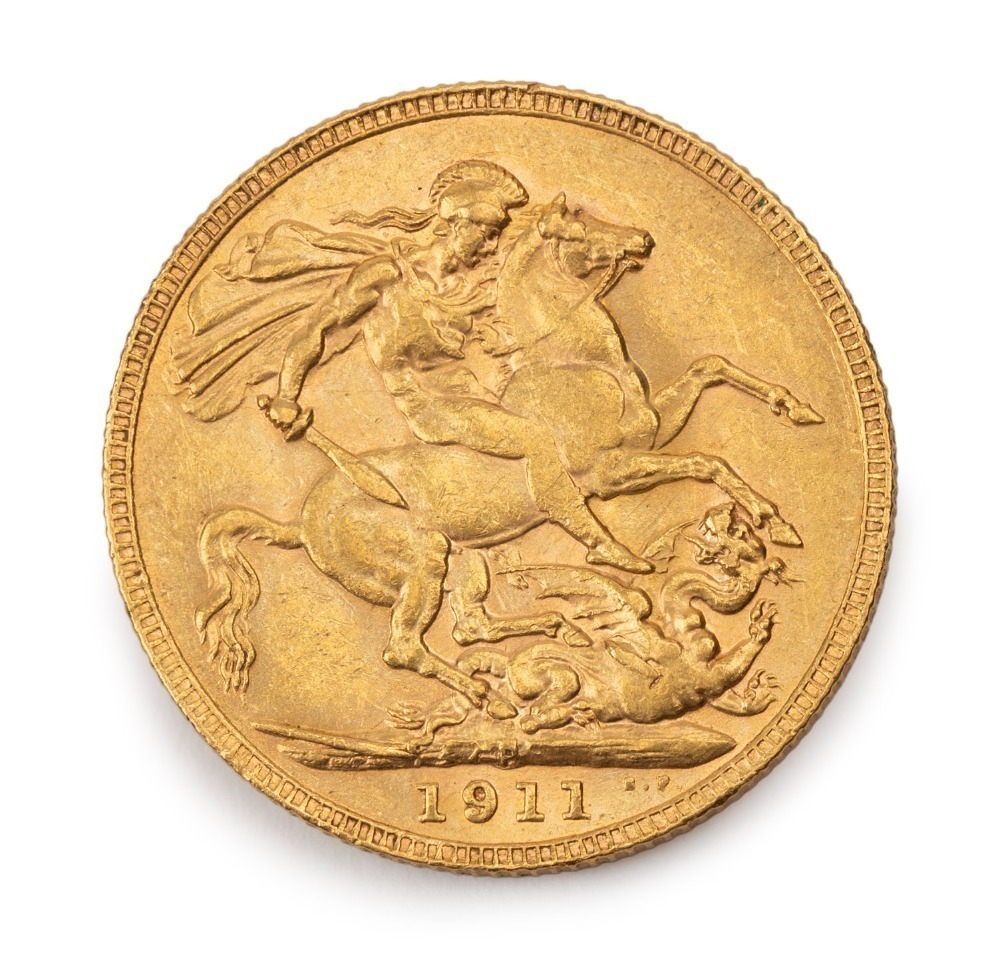 1911 Sovereign, GEORGE V, St. George reverse, Perth, Unc.