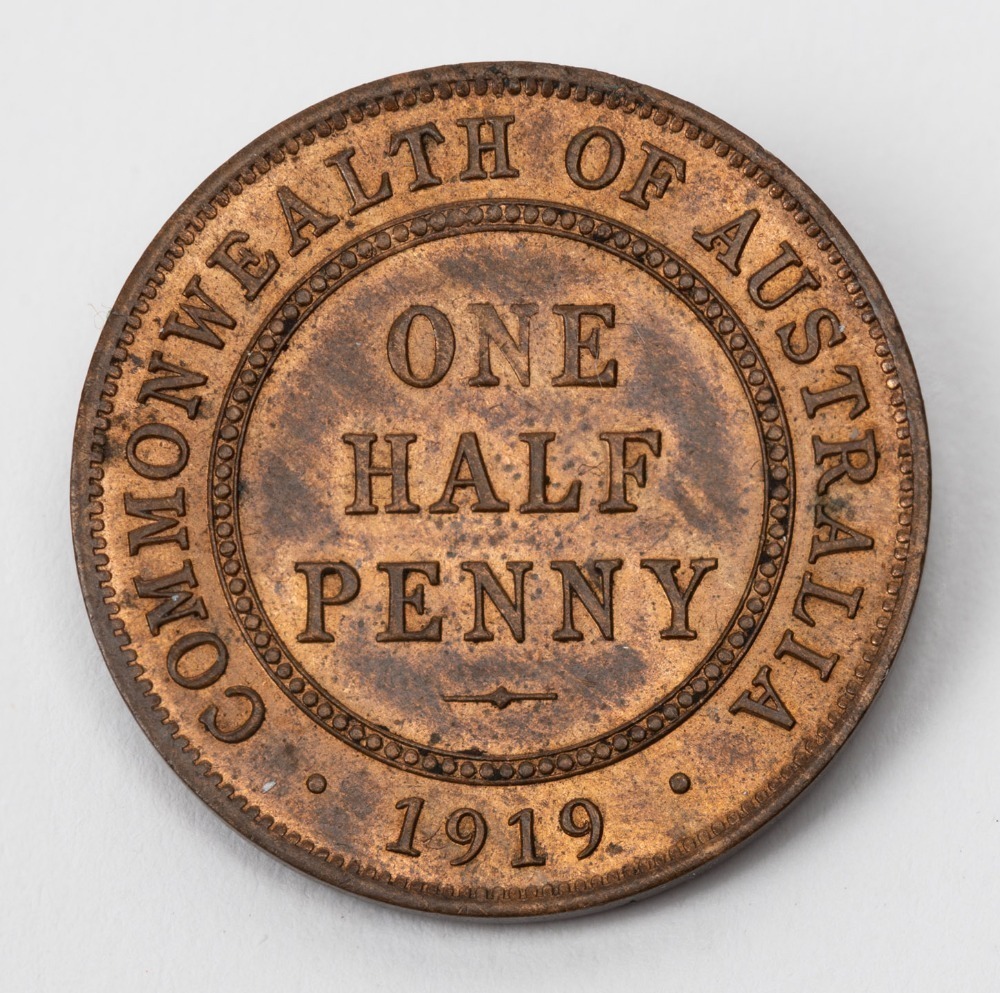 HALF PENNY: GEORGE V, 1919, aUnc;