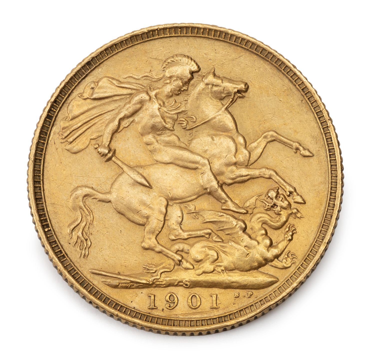 1901 Sovereign, Veiled Head, St. George reverse, Sydney, VF+.
