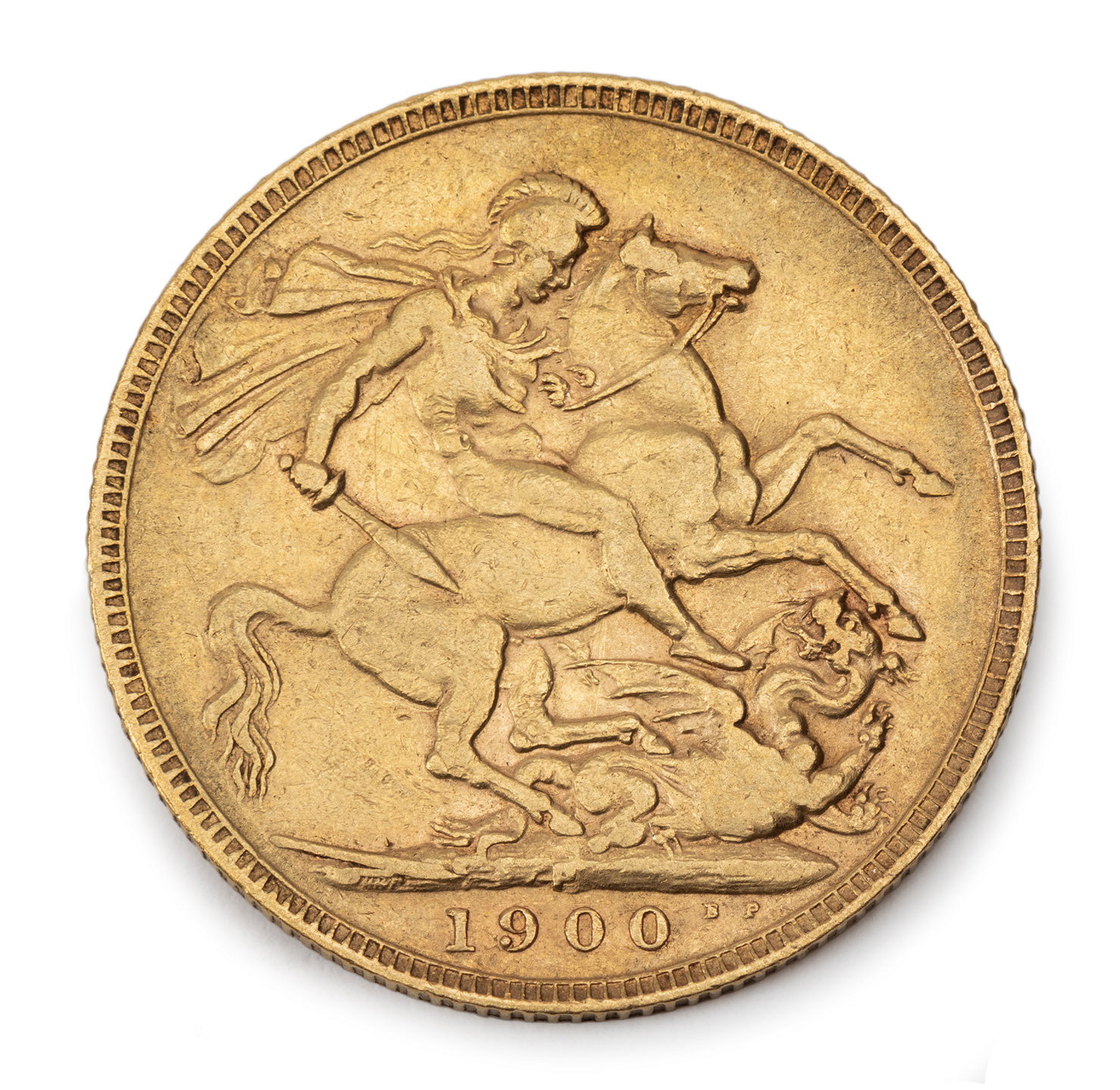 1900 Sovereign, Veiled Head, St. George reverse, Perth, F.