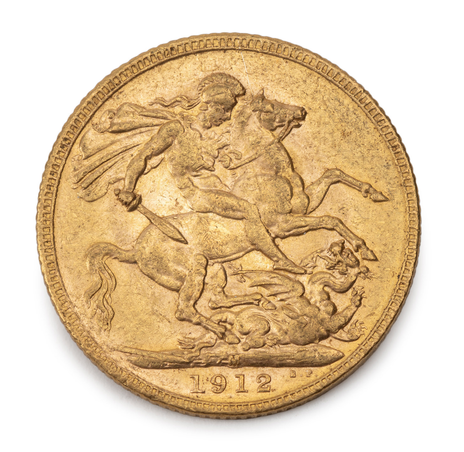 1912 Sovereign, GEORGE V, St. George reverse, Melbourne, EF.