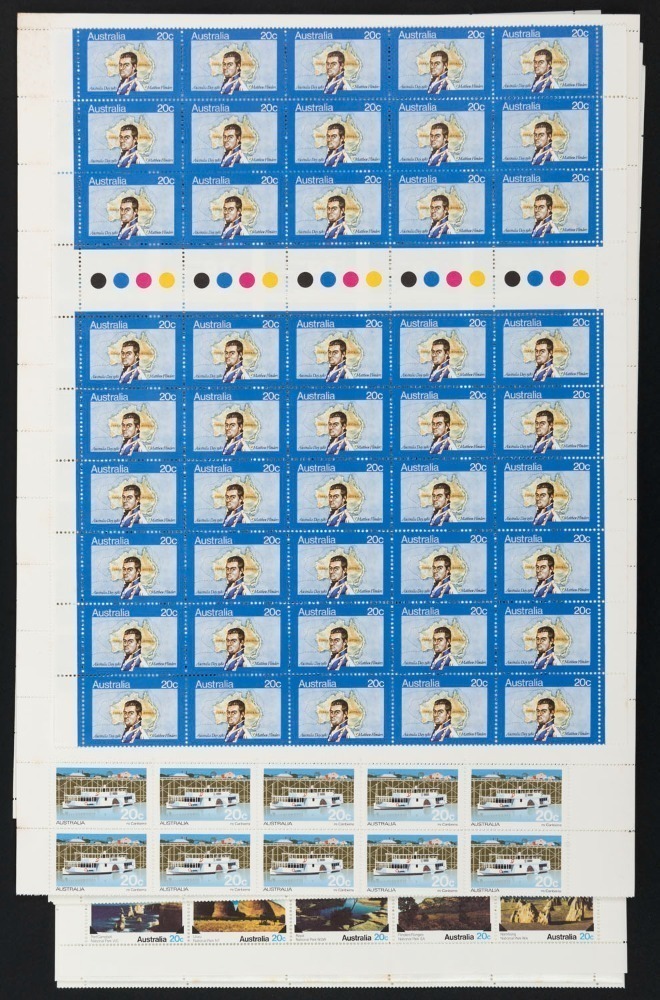 1979 - 80 accumulation of 20c commemoratives; mainly complete sheets. (1,665). MUH. FV: $330+