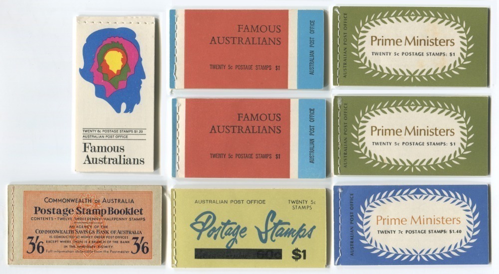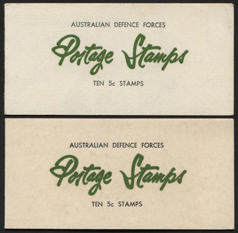 MILITARY POST BOOKLETS: 1967-68 (SG.MB1a &MB2) 50c booklets with comprising 1967 booklet (minor foxing) containing 5c Thornbill block of 10 (attached at left) and 1968 booklet 5c QEII block of 10 (attached