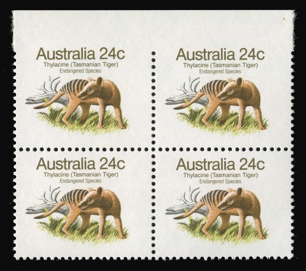 1981 24c Thylacine (Tasmanian Tiger) block (4) completely imperforate at top, MUH. BW: 903b) from the only sheet recorded. Cat.$1200 each vertical pair).