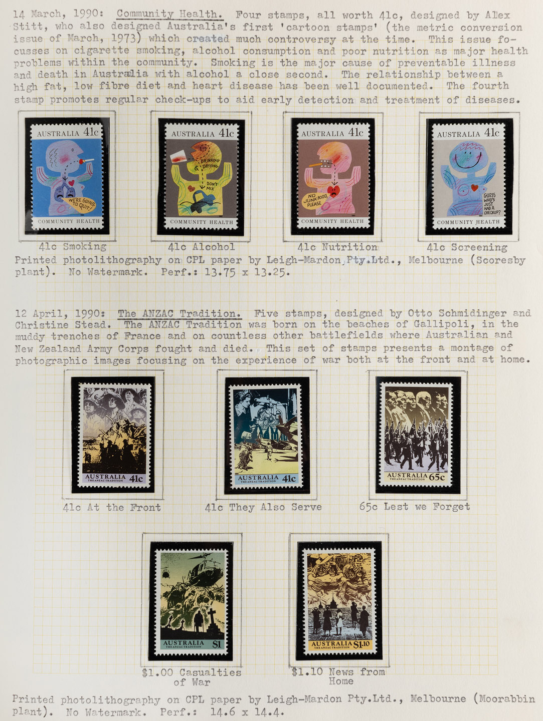 1990 - early 1992 specialized collection in a well-annotated volume. with singles, sets, Miniature sheets, gutter blocks, booklets, some special overprints, framas, etc., (100s) MUH. FV: $600+.