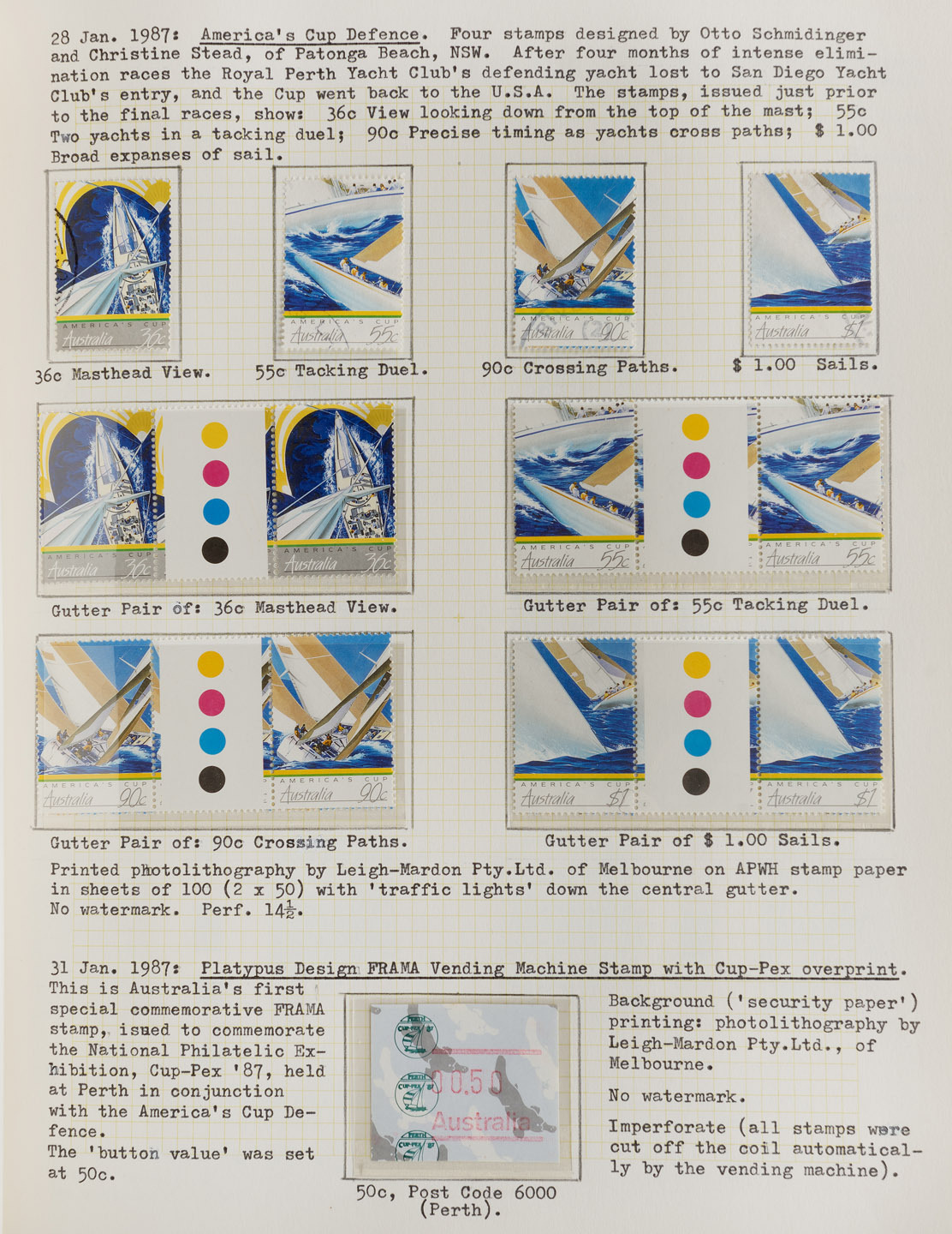 1987 - 1990 specialized collection in a well-annotated volume. with singles, sets, Miniature sheets, gutter pairs and blocks, booklets, some special overprints, framas, reprints,etc., (100s) MUH. FV: $450+.