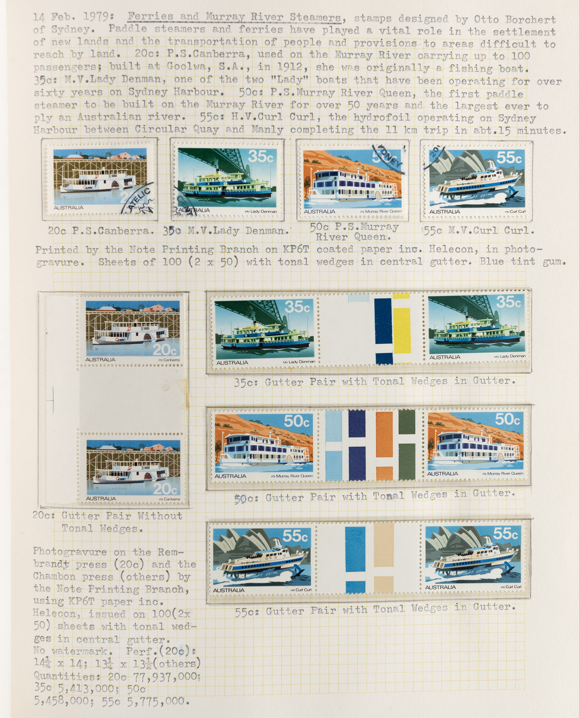 Late 1978 - late 1986 specialized collection in well-annotated album with MUH and FU singles, gutter pairs, strips, blocks, varieties, M/Sheets, booklets, framas, etc. (100s). FV: $210+ (** only).