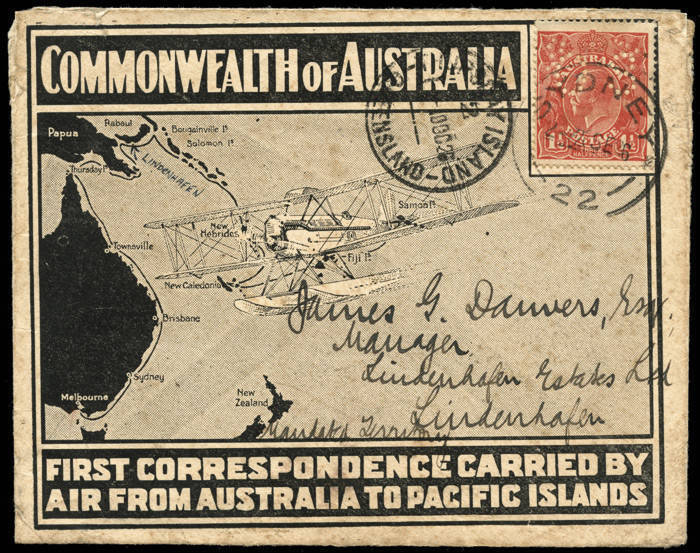 Pacific Islands Survey Flight: Sept. - Dec.1926 (AAMC.P2) 25 Sept.1926 Sydney - Lindenhafen, New Guinea, via Daru and Port Moresby with THURSDAY ISLAND 10 OC 26 cds applied in transit: A cover