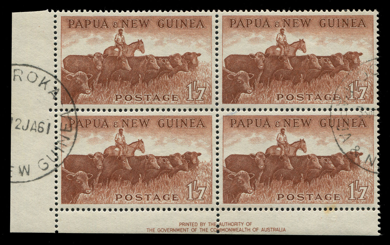 1958 (SG.22) 1/7 Cattle, Authority Imprint blk.(4) VFU. Exceptionally scarce thus.