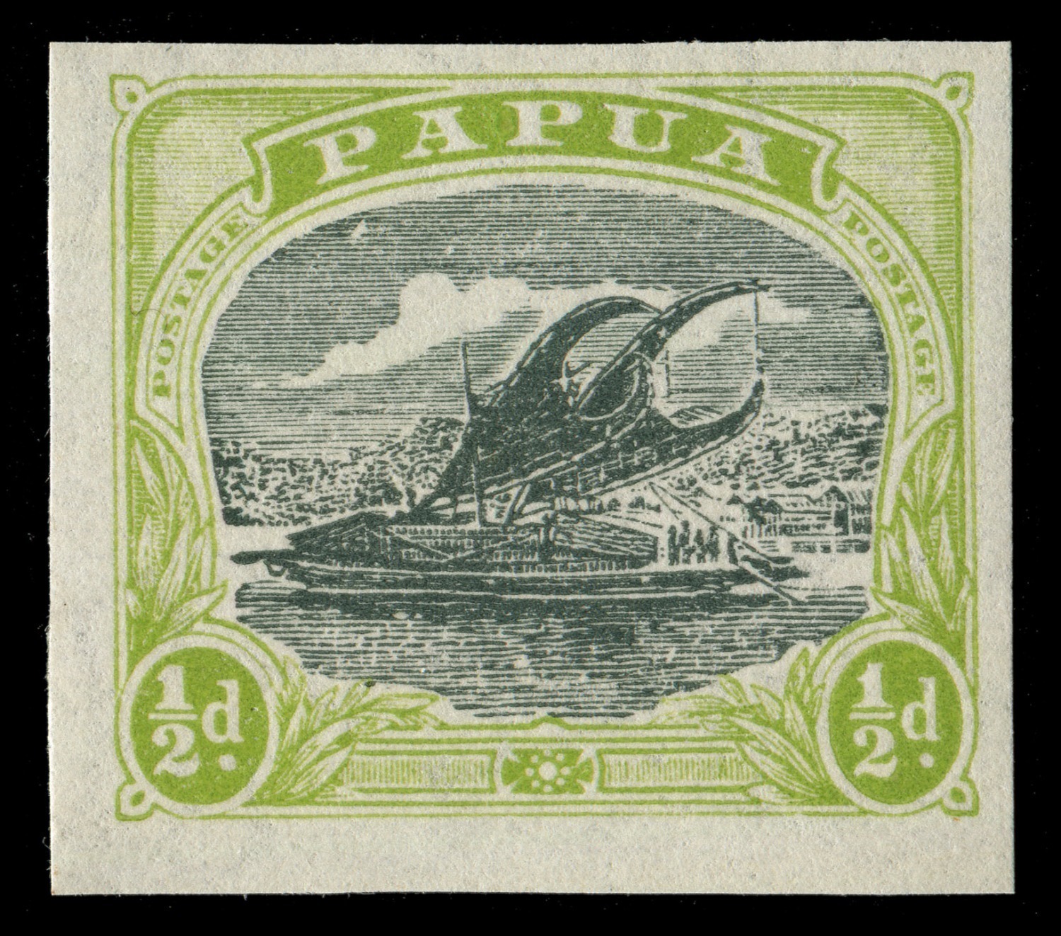 PLATE PROOF: 1919 (SG.93) ½d myrtle & apple-green Lakatoi, Imperforate plate proof on watermarked gummed paper, MUH.