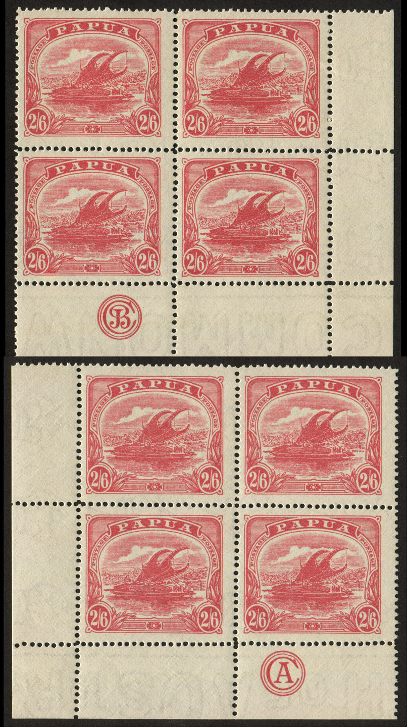1911-15 (SG.91) 2/6 rose-carmine Lakatoi, in matching lower left and lower right CA and JBC Monogram cnr.blks.4, MUH. (8). Cat.£384++.