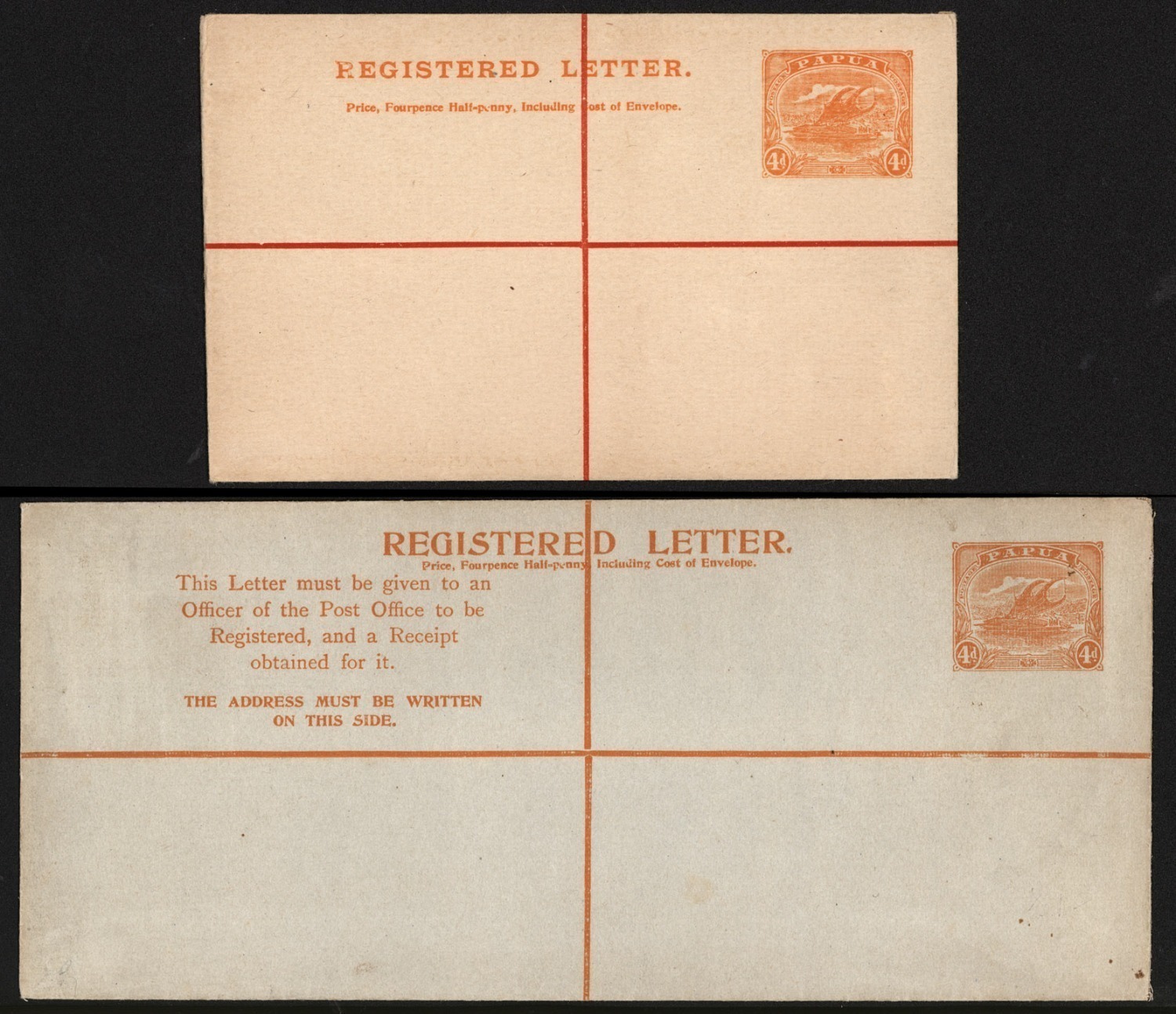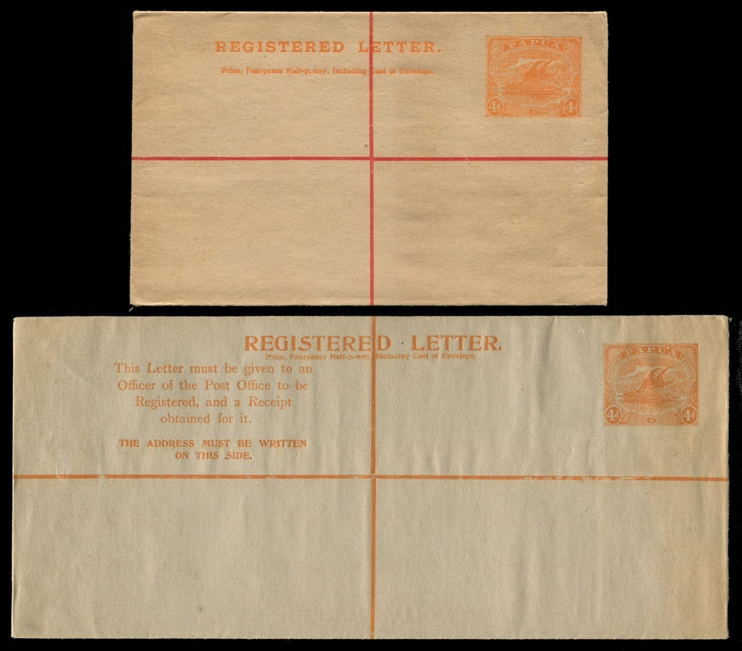 POSTAL STATIONERY: 1927 4d Lakatoi Registration Envelopes, both sizes in fine Unused condition, (2). BW: PAP3 & 4 - Cat.$1400.
