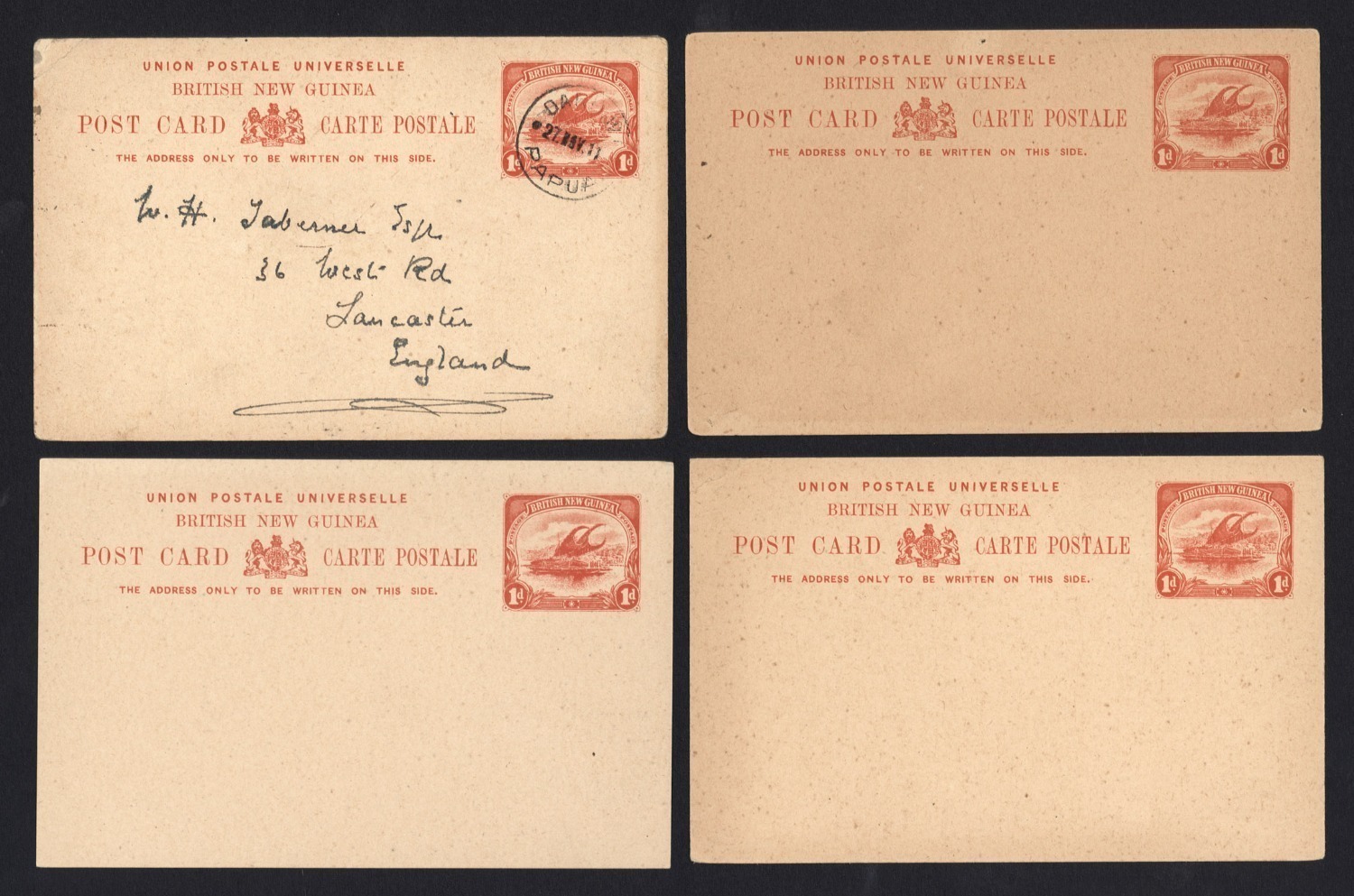 POSTAL CARDS: 1901 1d Red and 1½d Blue Lakatois, 3 examples of each Unused, together with a1d Card used in November 1911 from DARU to England, (7 items). BW: $1000