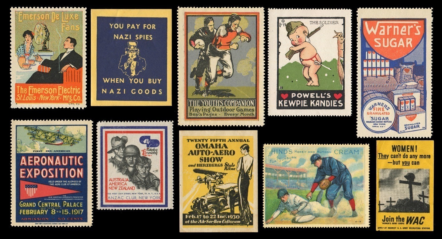 CINDERELLAS, ADVERTISING STAMPS, PATRIOTIC LABELS, INTERNATIONAL & NATIONAL EXPOSITIONS, CONVENTIONS, CHARITY LABELS, ETC.: A truly remarkable assembly of these fascinating items, circa 1899 - 1990, in nine