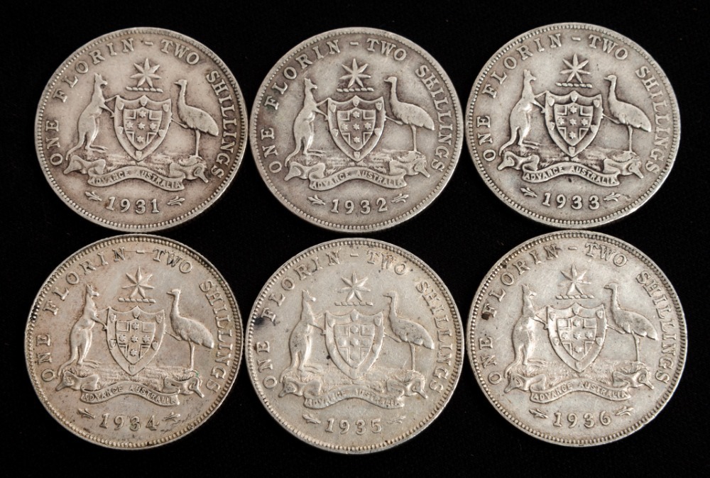 FLORINS: 1931 - 1936, (6), VG - VF.