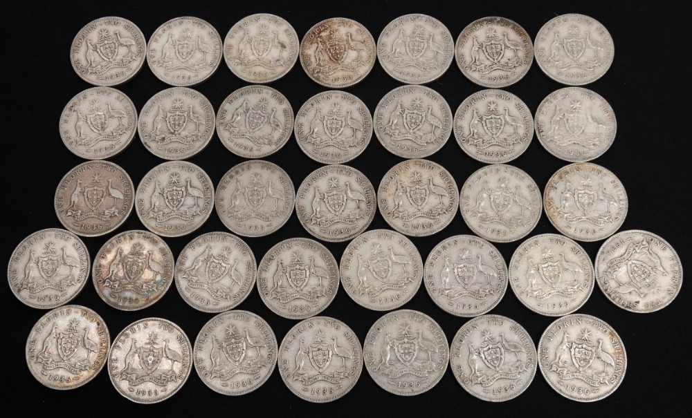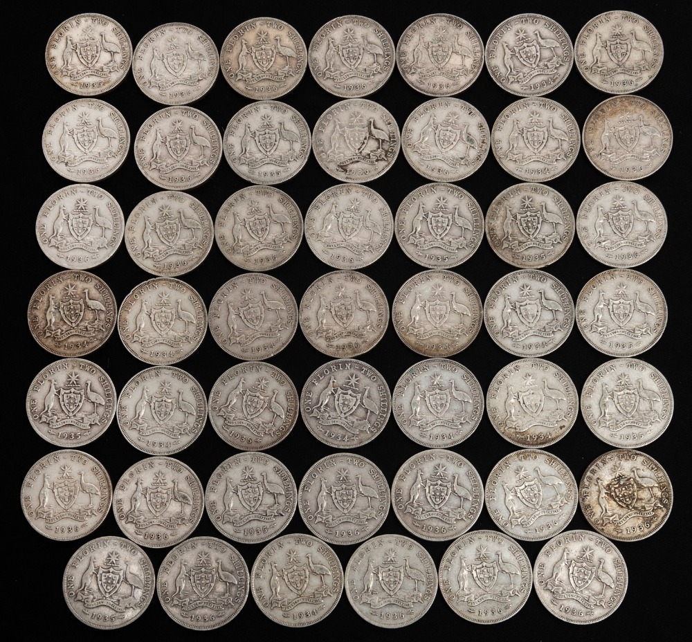 FLORINS: 1934 (12), 1935 (9) and 1936 (27) mixed condition, poor - VG. (Total: 48).