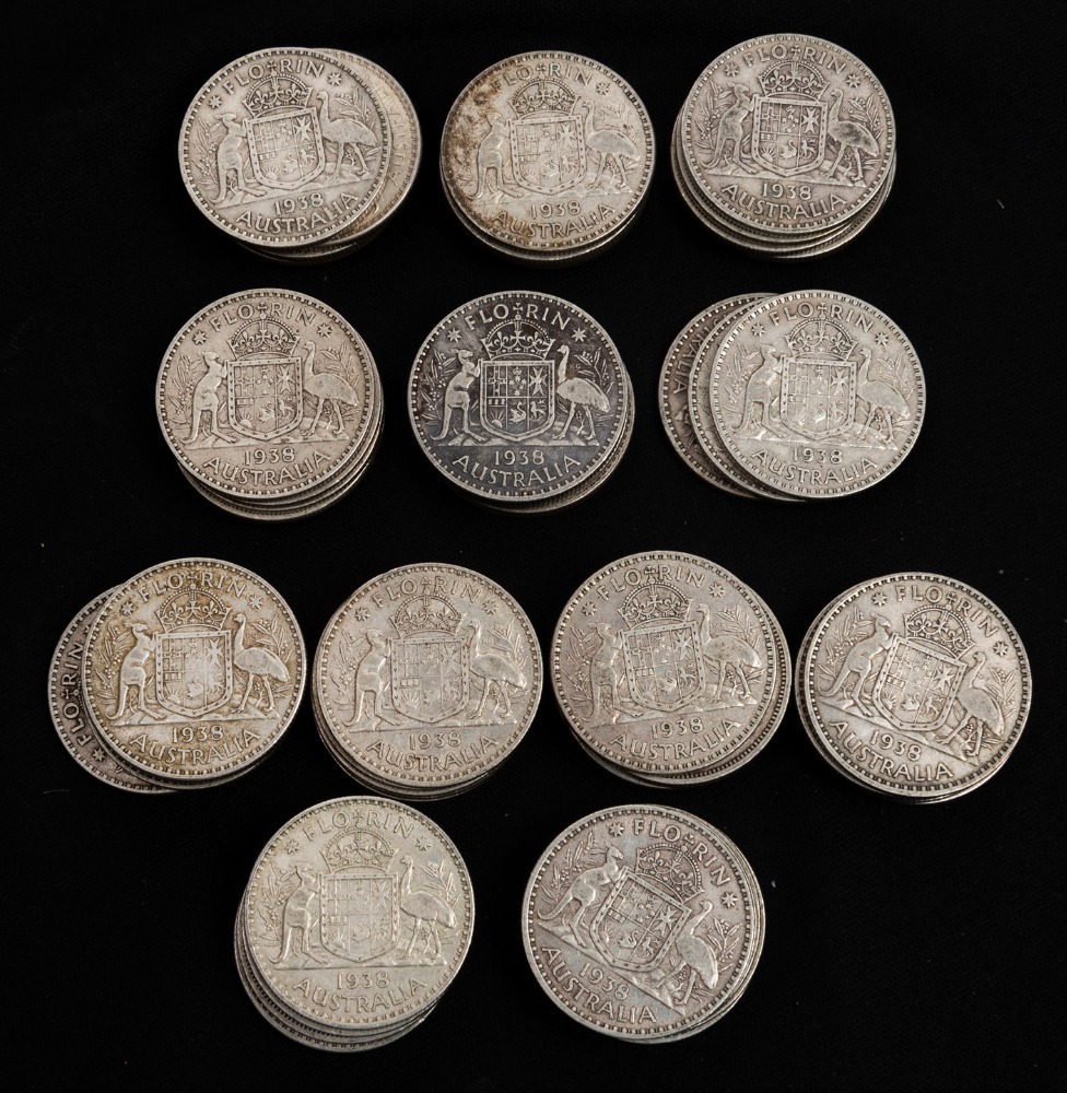 FLORINS: 1938 (58), mixed condition, mainly F-VF.