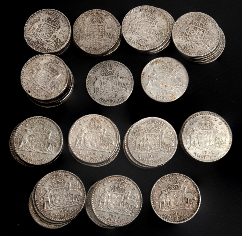 FLORINS: 1941 (58), mixed condition, mainly F-VF.