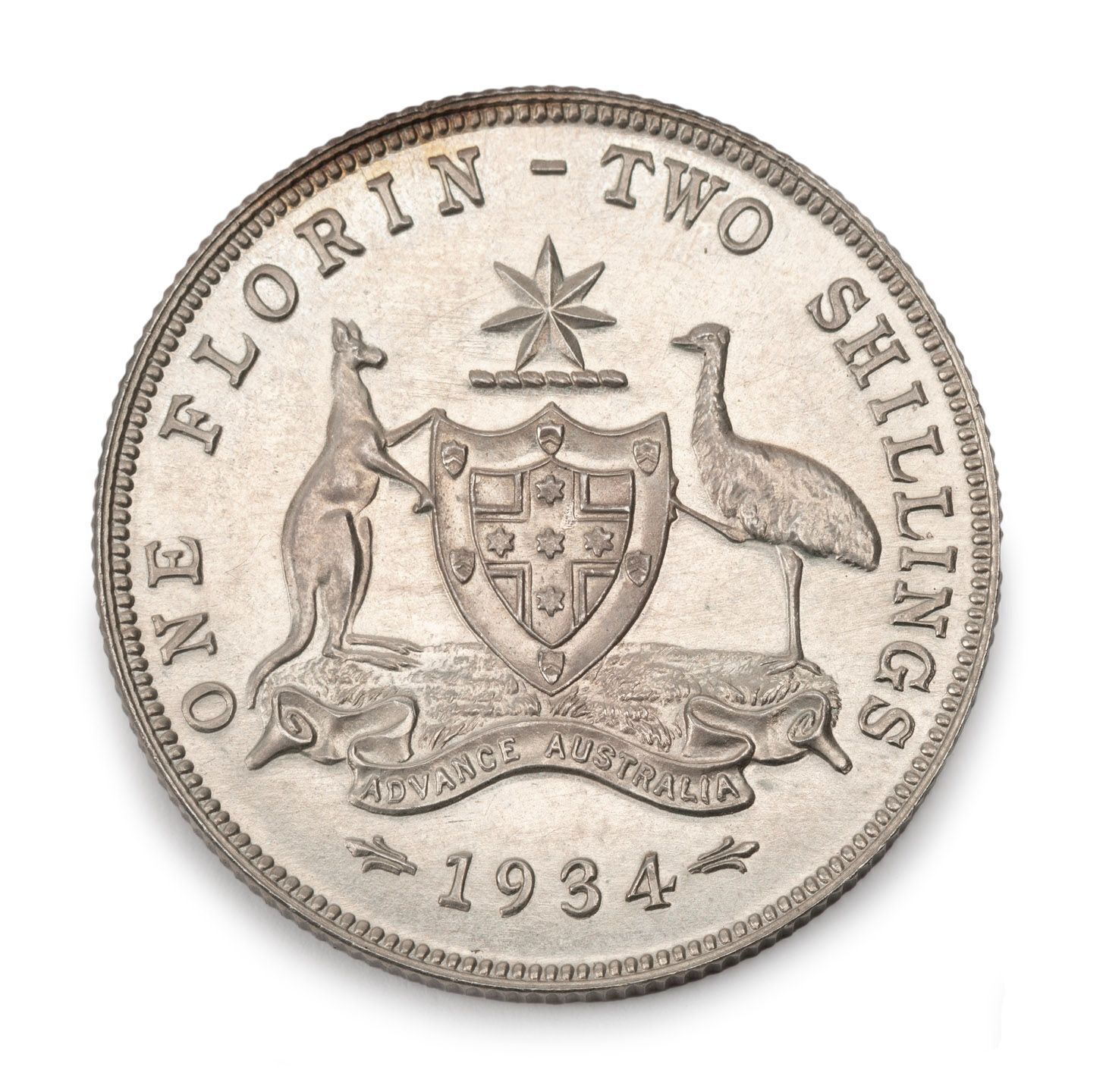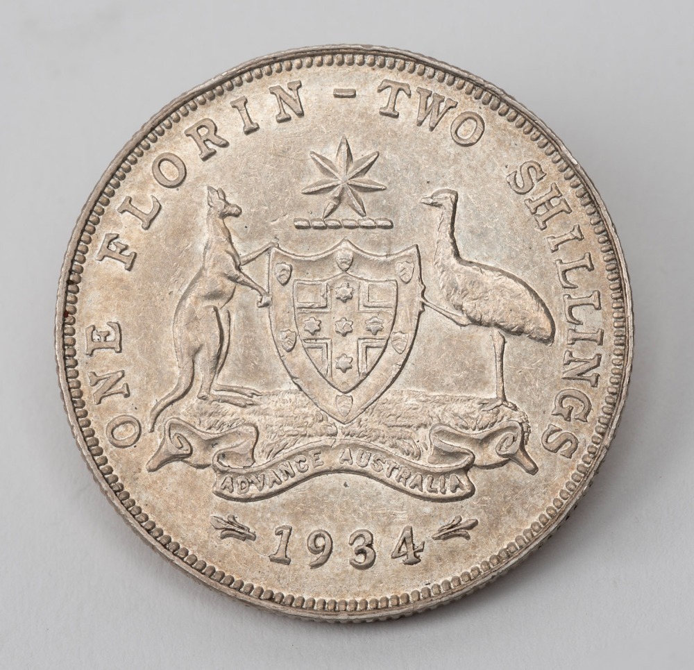 FLORIN: 1934-35 Victorian Centenary, EF.