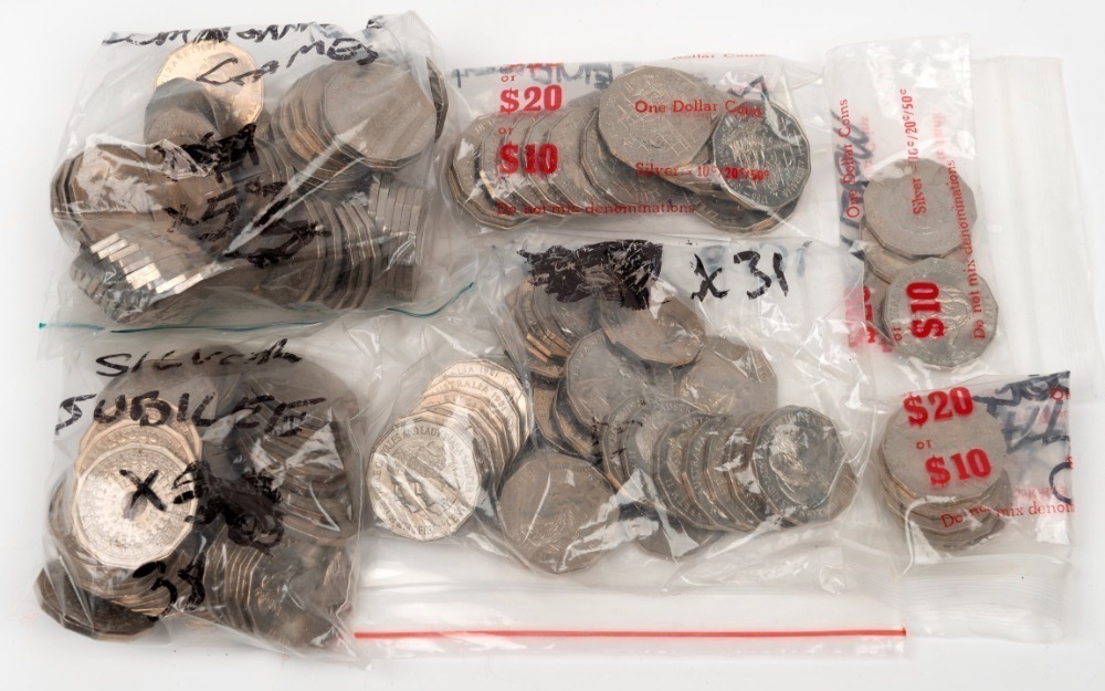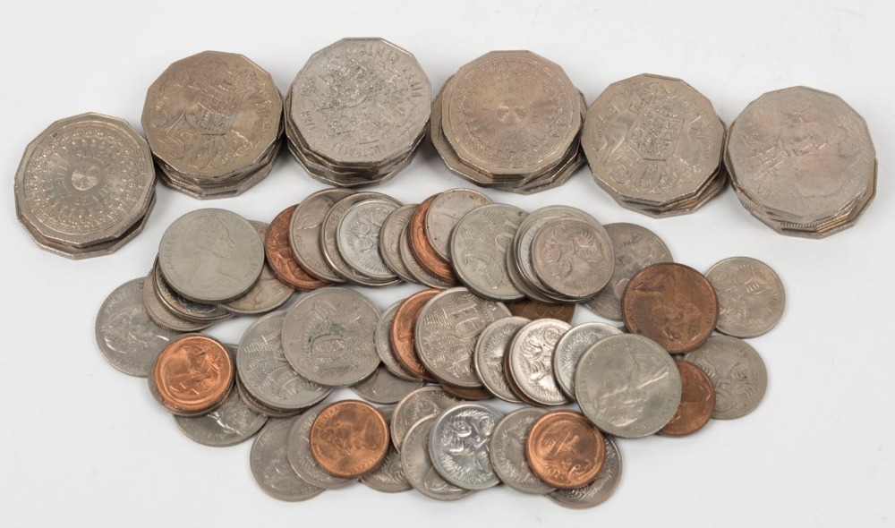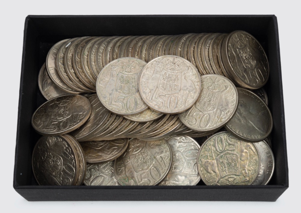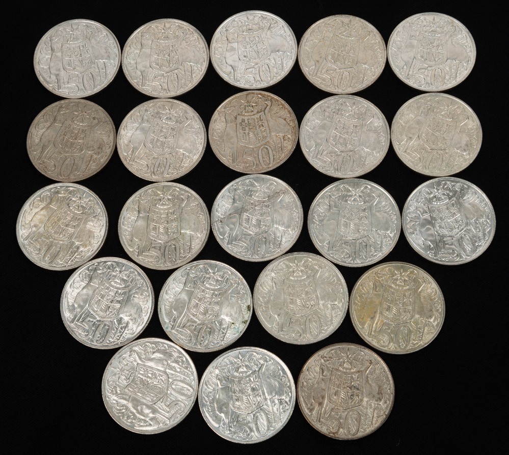 FIFTY CENTS: 1970 Cook (5), 1977 Silver Jubilee (36), 1981 Royal Wedding (31), 1982 Commonwealth Games (54), 1988 Bicentenary (19) and 1991 Decimal Anniversary (4); mainly EF.