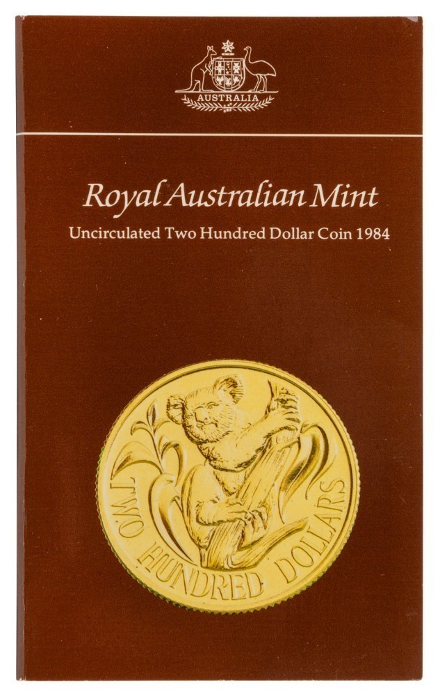 TWO HUNDRED DOLLARS, 1984 $200 gold Koala, uncirculated; in folder of issue.
