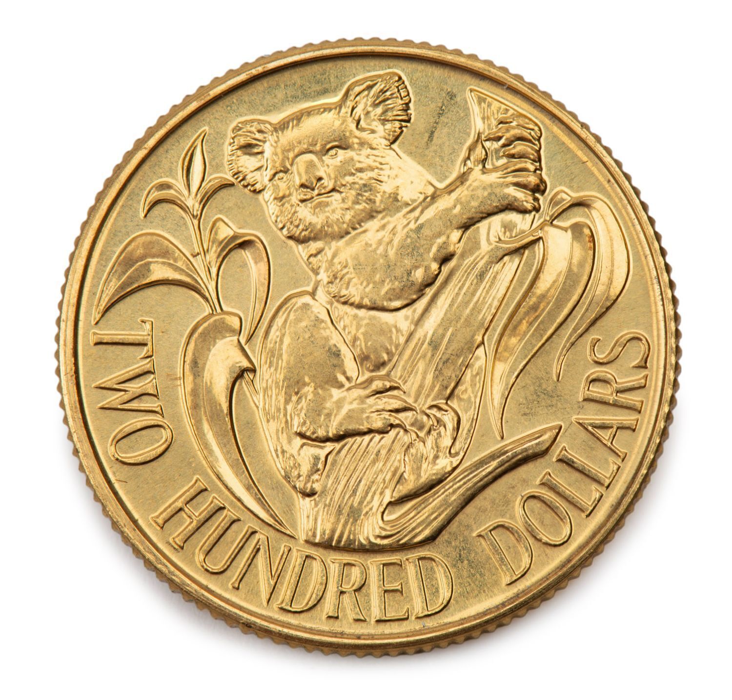 TWO HUNDRED DOLLARS, 1983 $200 gold Koala, uncirculated; in plastic pouch of issue.