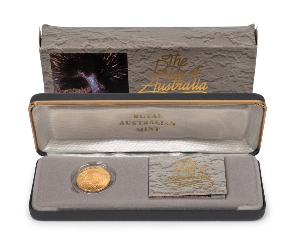TWO HUNDRED DOLLARS, 1992 $200 gold Echidna, Proof; in original box of issue.