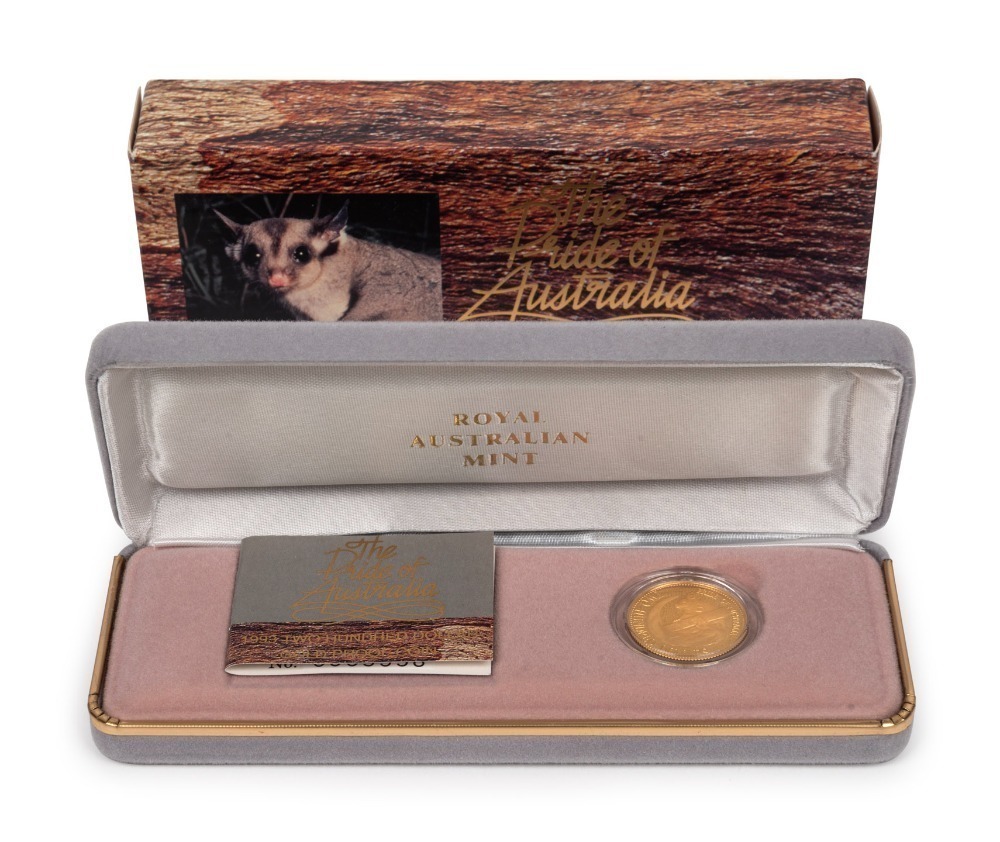 TWO HUNDRED DOLLARS, 1993 $200 gold Squirrel Glider, Proof; in original box of issue.