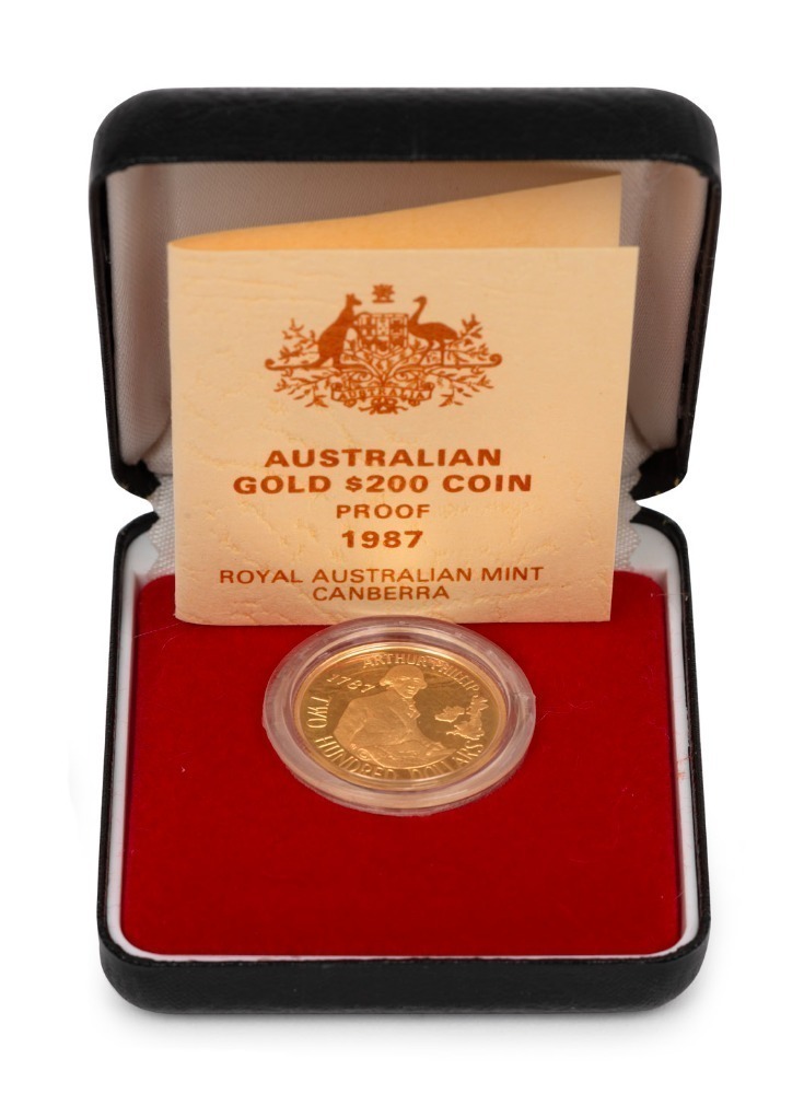 TWO HUNDRED DOLLARS, 1987 $200 gold Arthur Phillip, Proof; in original box of issue.