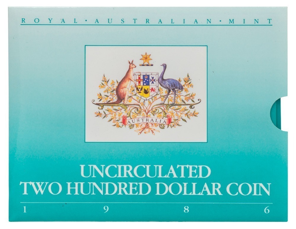 TWO HUNDRED DOLLARS, 1986 $200 gold Koala, uncirculated; in folder of issue.