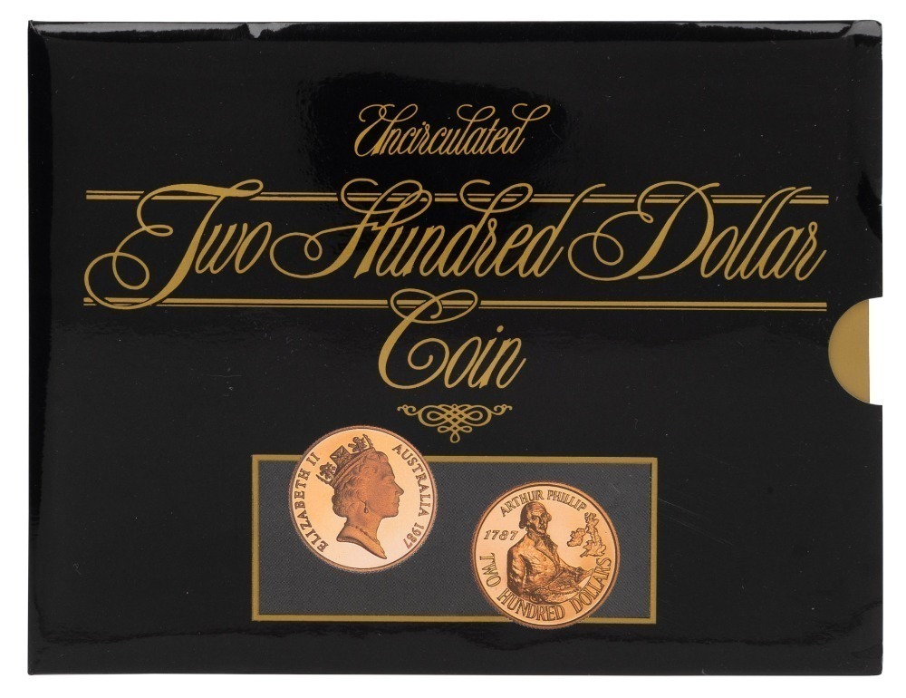 TWO HUNDRED DOLLARS, 1987 $200 gold Arthur Phillip, uncirculated; in folder of issue.