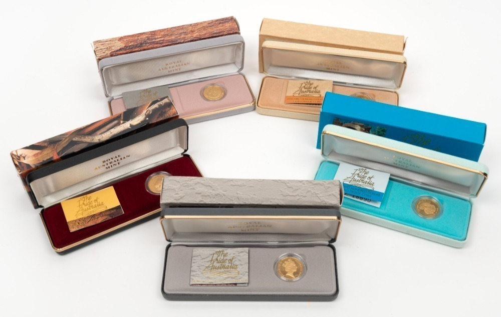 TWO HUNDRED DOLLARS, 1989, 1991, 1992, 1993 and 1994 $200 gold The Pride of Australia Series, Proofs; all in original box of issue. (5 items).
