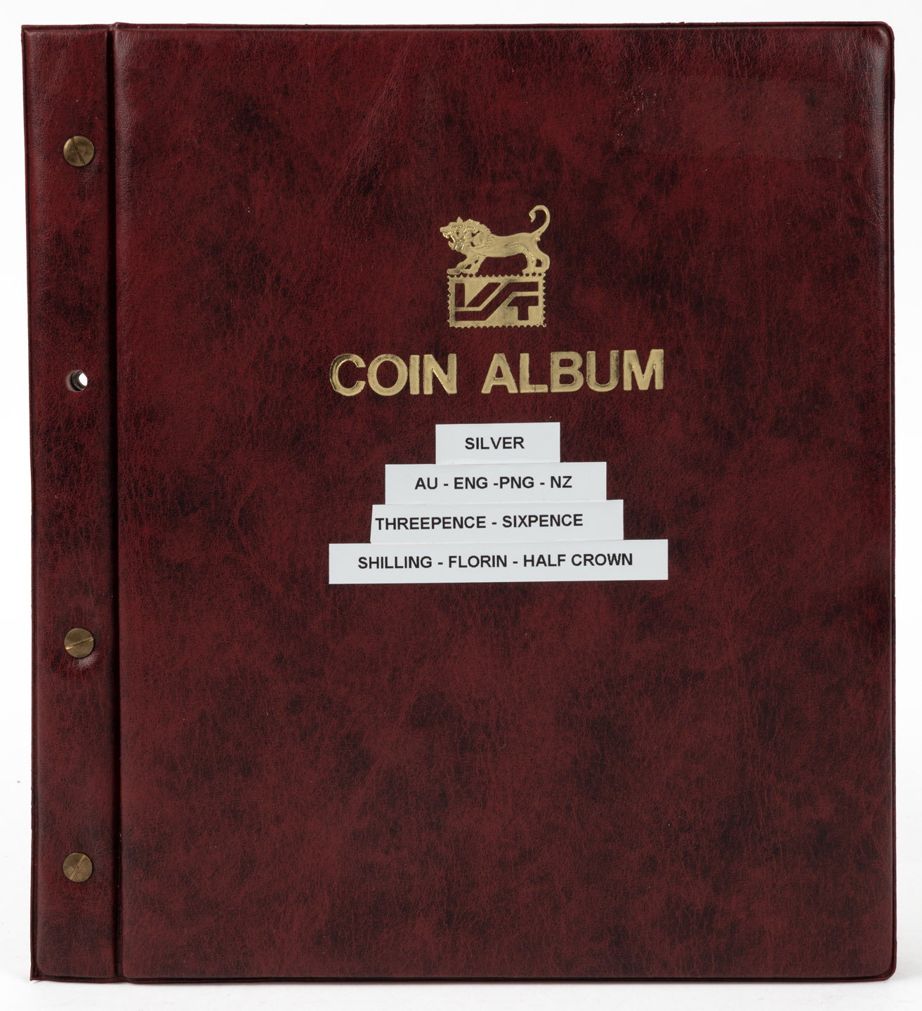 An album containing mainly a duplicated range of Australian and Great Britain Florins, Threepences, Sixpences, Shillings and some Half-Crowns; some heavy duplication and a few N.Z., etc. have crept in. Worth a