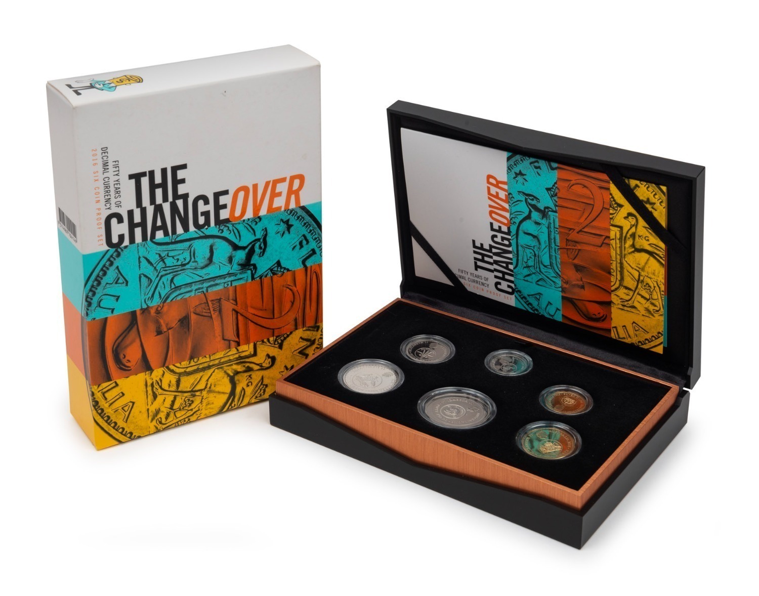 THE CHANGEOVER - FIFTY YEARS OF DECIMAL CURRENCY: RAM 2016 six-coin proof set, in original case with CoA, poster, and box. (Image 1)