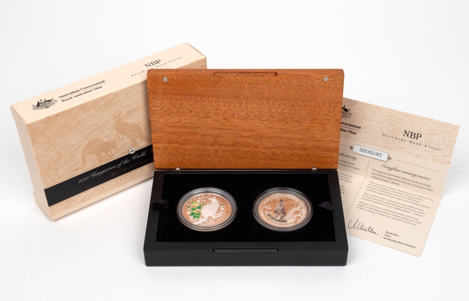 KANGAROOS OF THE WORLD: 2013 RAM/Narodowy Bank Polski joint-issue two-coin silver proof set, limited edition 6240/10,000, in