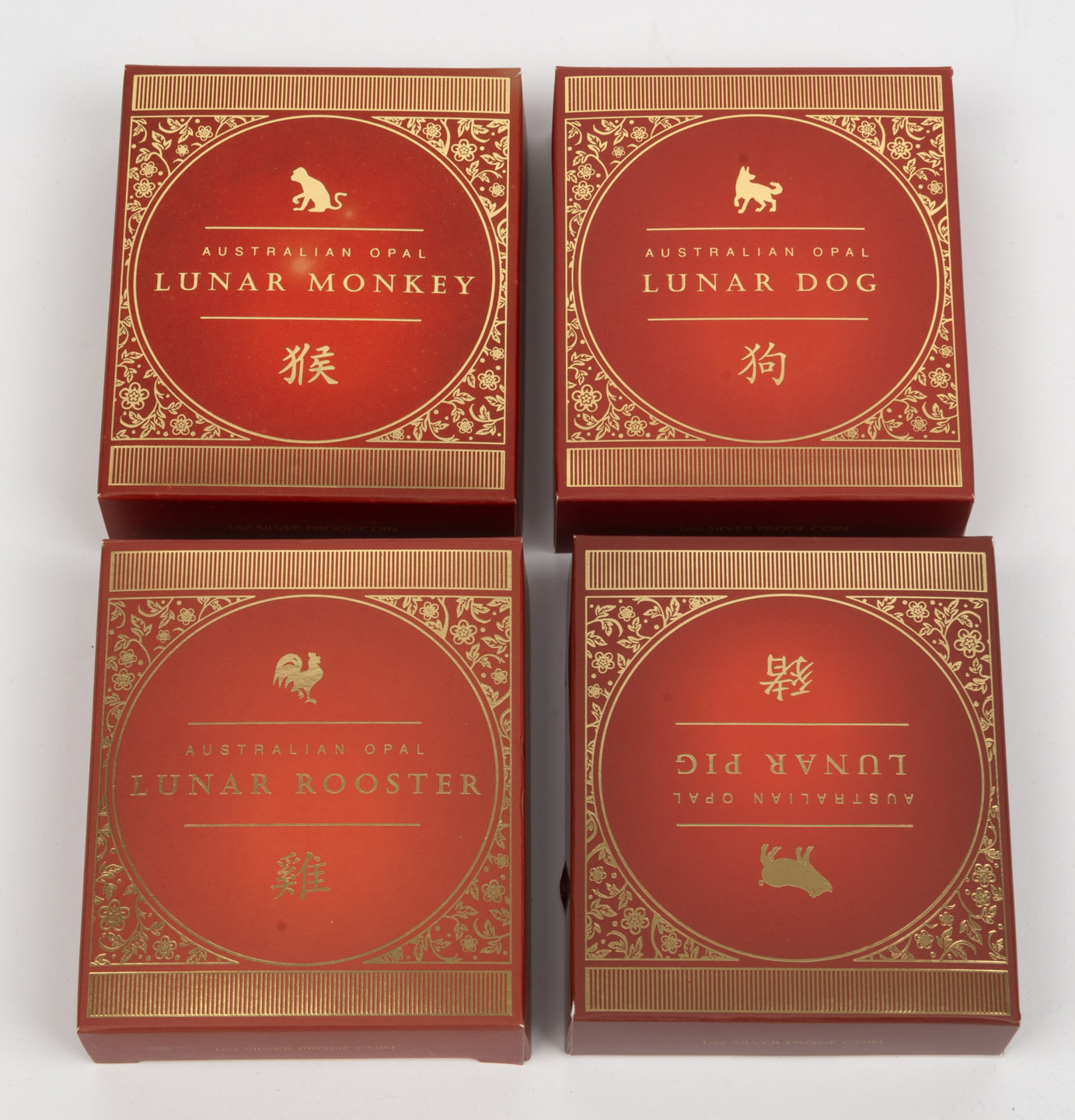 comprising 2016 Year of the Monkey, 2017 Year of the Rooster, 2018 Year of the Dog, and 2019 Year of the Pig. (4 items) (Image 1)