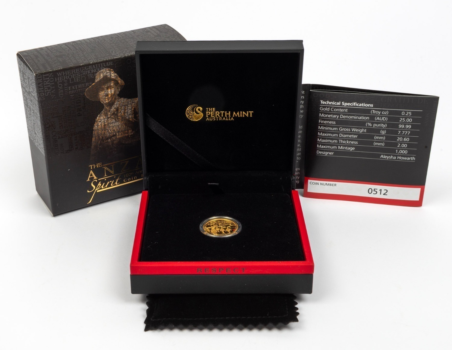 TWENTY-FIVE DOLLARS - ¼oz GOLD: Perth Mint 2014 'The ANZAC Spirit - 1914 "To Our Last Man and our Last