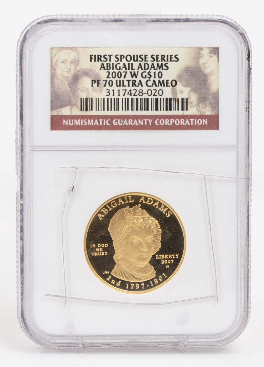 FIRST SPOUSE SERIES: 2007 Abigail Adams $10 pure gold Proof, PF70 Ultra Cameo. (Image 1)