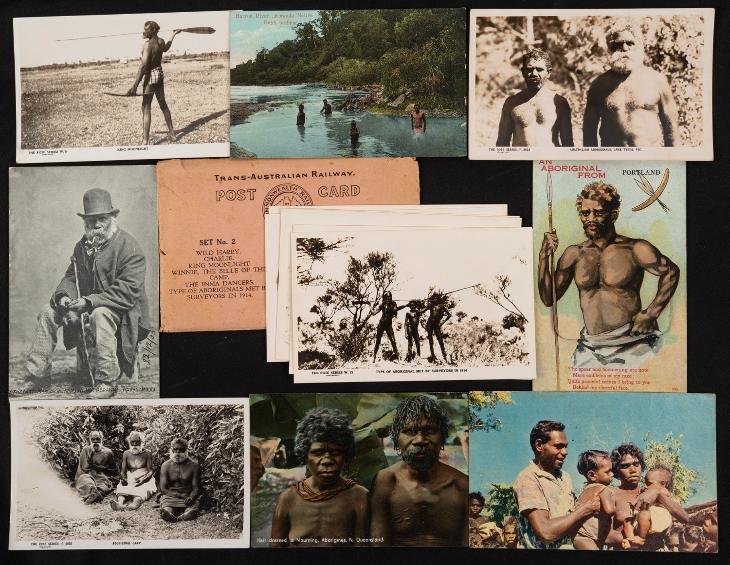 POSTCARDS - INDIGENOUS AUSTRALIANS: A collection of mainly photographic postcards featuring individuals and groups, affording