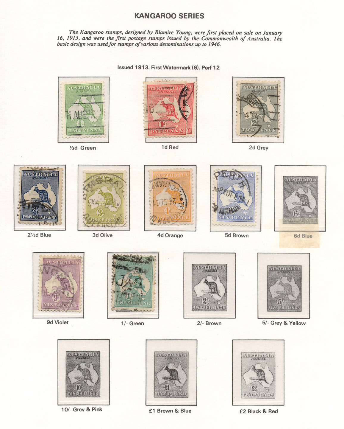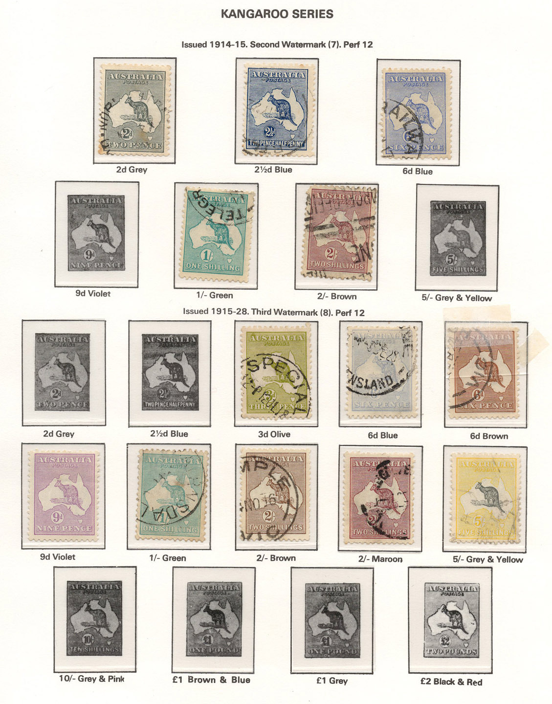 1913-65 collection in Seven Seas Hingeless album pages; noted Kangaroos 1st Wmk to 5/- (ex. 4d and 9d), 2nd Wmk 6d, 3rd Wmk to 2/-
