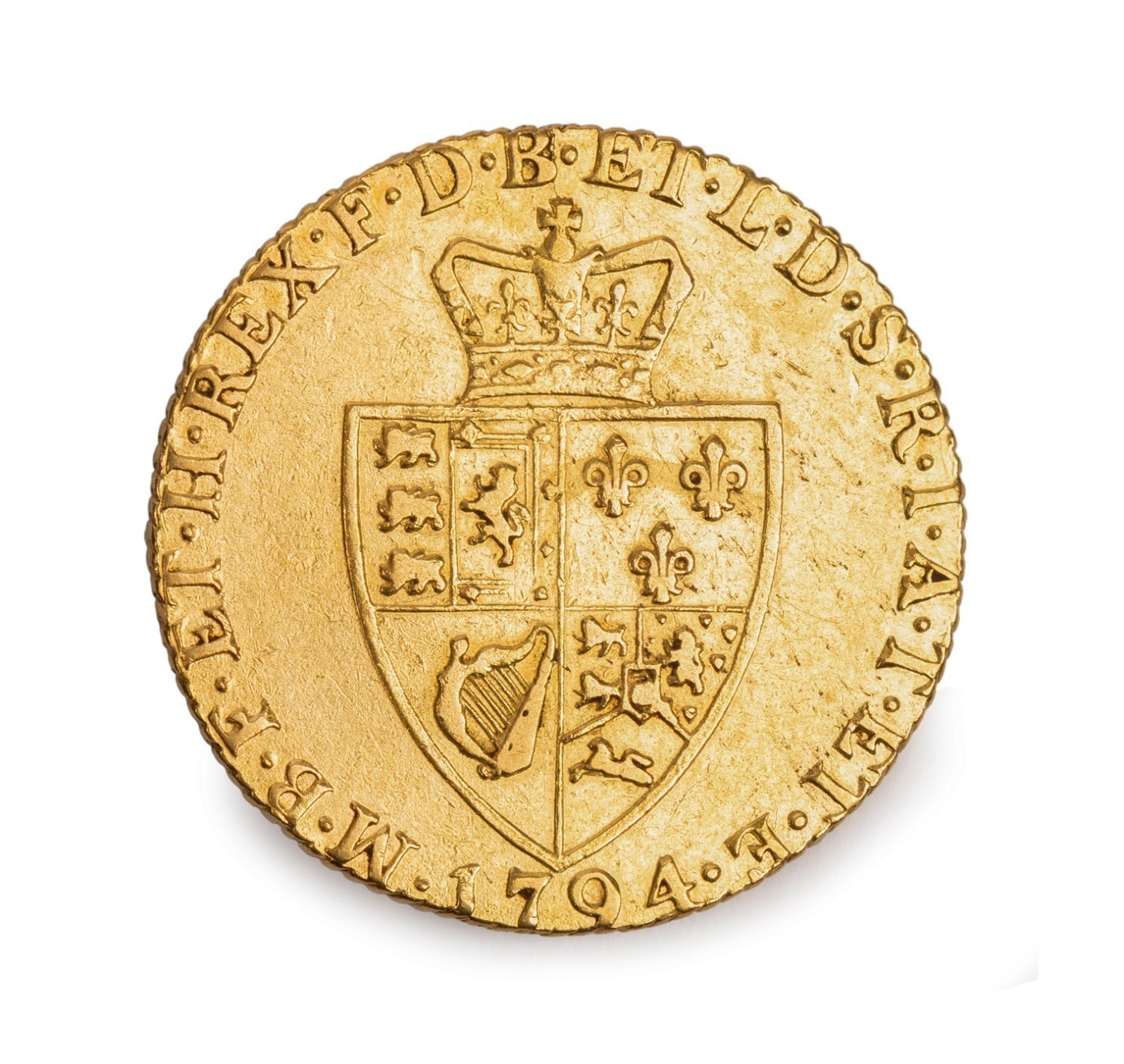 Great Britain, GEORGE III gold guinea, fifth bust or spade type, 1794, VF+ (Image 1)