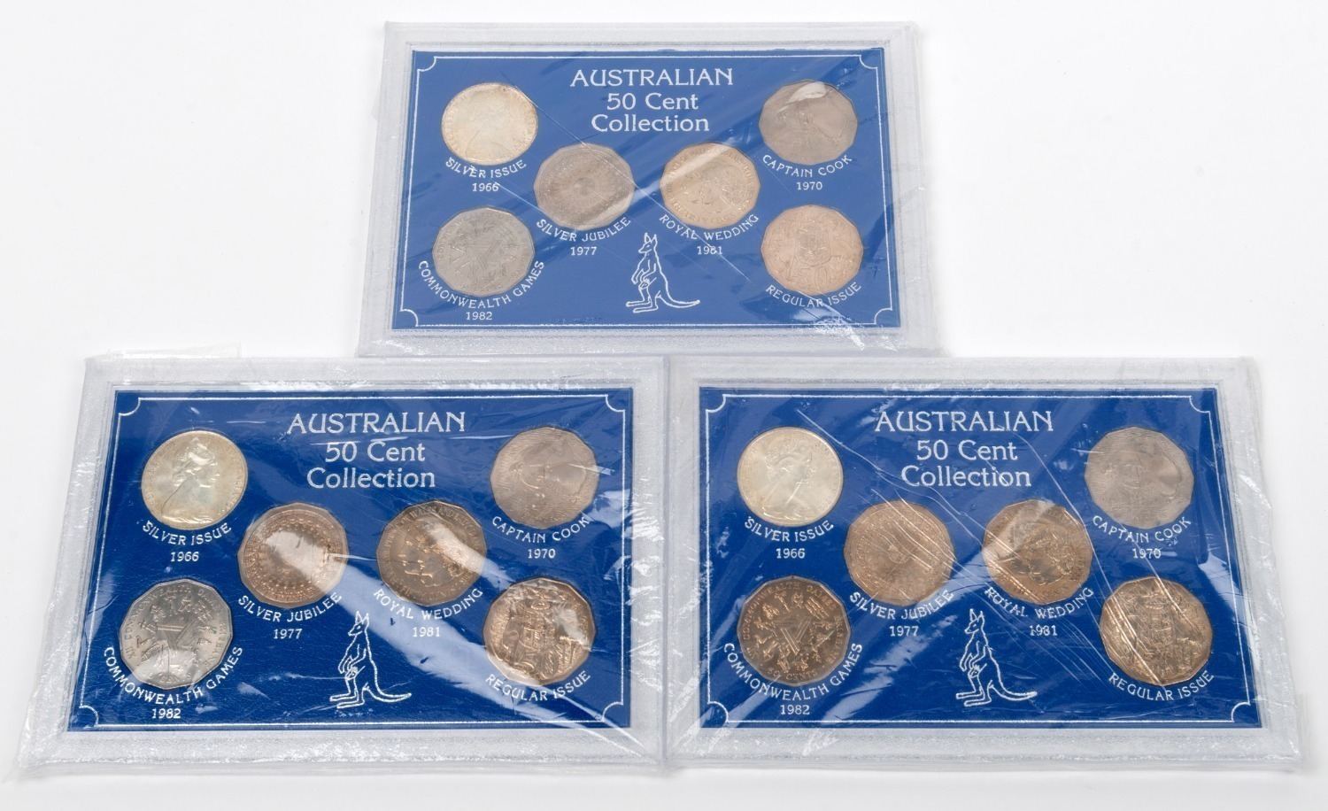 ELIZABETH II, 50c cents, 1966 Round, 1970 Captain Cook, 1977 Silver Jubilee, 1981 Royal Wedding, 1981 regular issue & 1982