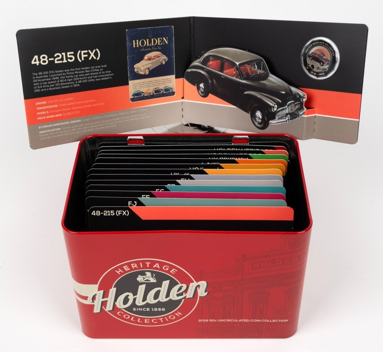 HOLDEN: 2016 RAM Heritage collection commemorative 12 x 50c coin set, in original tin, with booklet and all card spacers