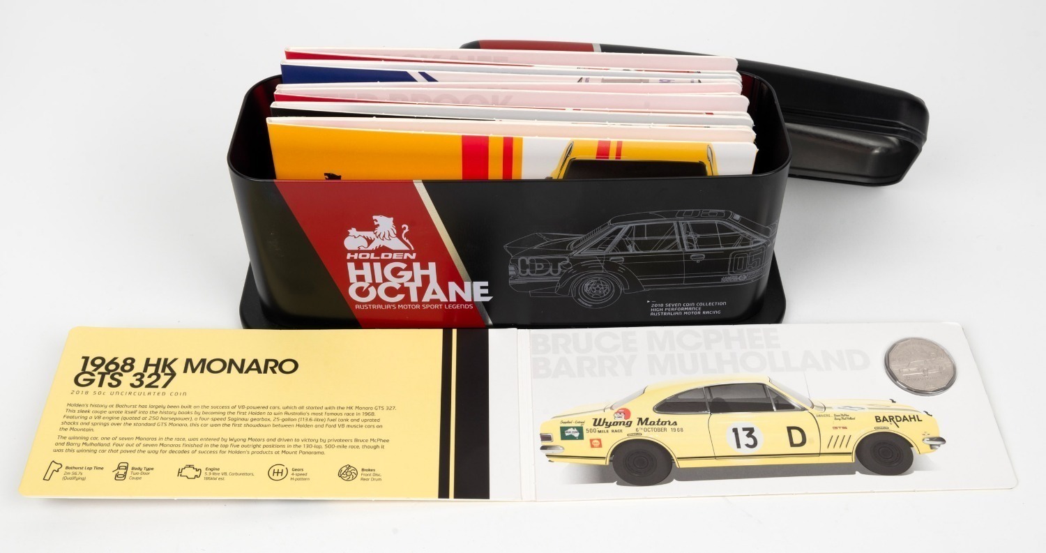 HOLDEN: 2018 RAM High Performance Australian Motor Racing commemorative 7 x 50c coin set, in original tin. (Image 1)