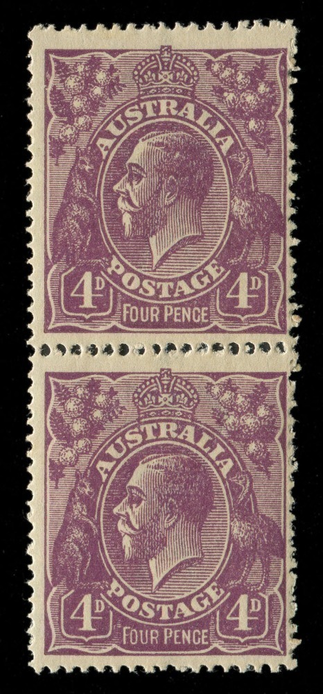 FOUR PENCE VIOLET: Plate 2 vertical pair [R6/12] with Thin 'FOUR PENCE' variety to the lower unit (MUH), and "White