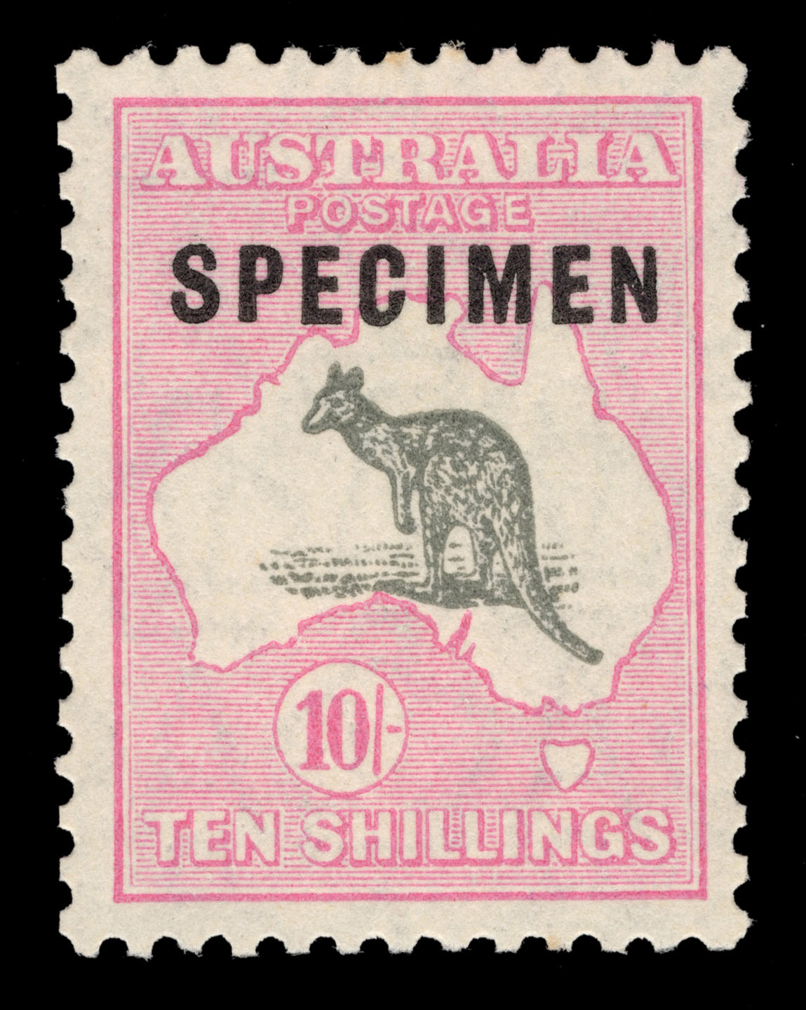 10/- SPECIMEN Overprint Type C, subtype 1 with "hooked or damaged C", very attractive, and lightly mounted; a light tone