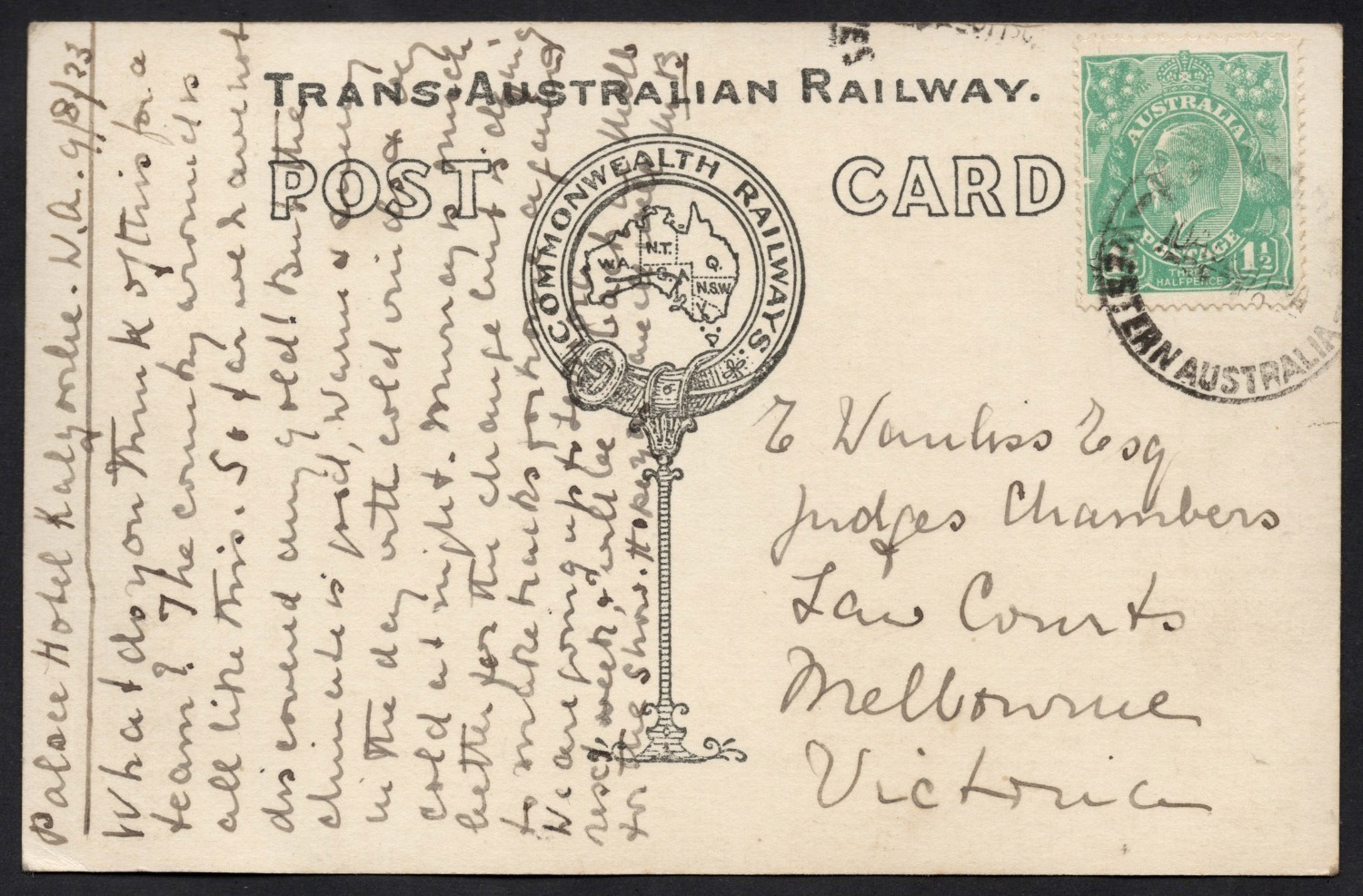 Trans-Australian Railway RP postcard from Kalgoorlie to Melbourne. BW:88(14)g. (Image 1)